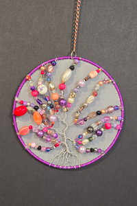 Product details for Pink & Purple Tree of Life Suncatcher.