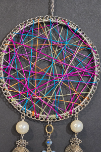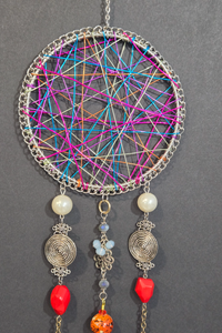 Handmade Strung Wire suncatcher, multicolor madness, 5 inches wide